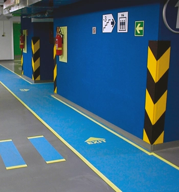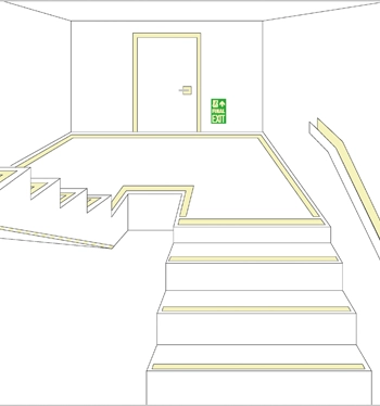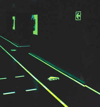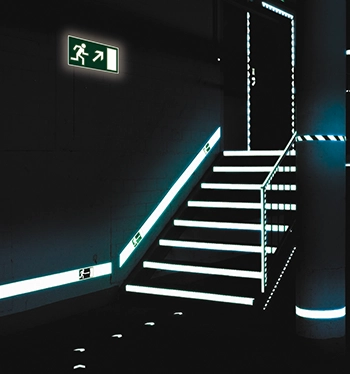 Ein langnachleuchtendes Sicherheitsleitsystem erhöht die Fluchtgeschwindigkeit und Orientierung. Somit ist eine sichere und schnelle Rettung aus dem gefährdeten Bereich (z.B. bei Verrauchung) möglich.